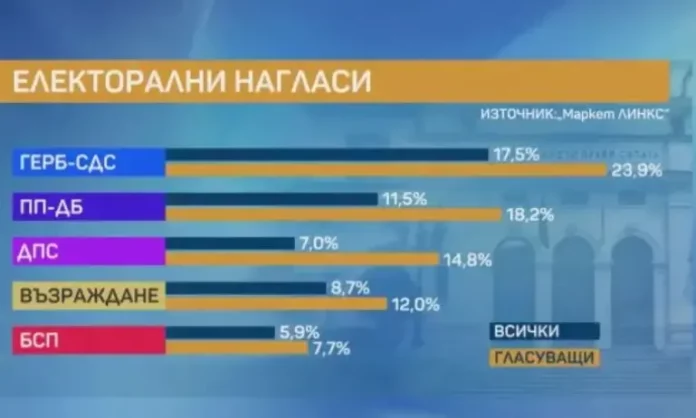 Последно проучване на социологическа агенция Маркет Линкс сочи, че при избори днес първа политическа сила е ГЕРБ-СДС с 23.9%, втори са ПП-ДБ с 18.2%, след тях се нареждат ДПС с 14.8%, четвърта сила е „Възраждане“ с 12%, пети са БСП с едва 7.7%. Извън чертата попада ИТН, които са с 3.3%. Доверието към правителството варира от 22 до 30%.