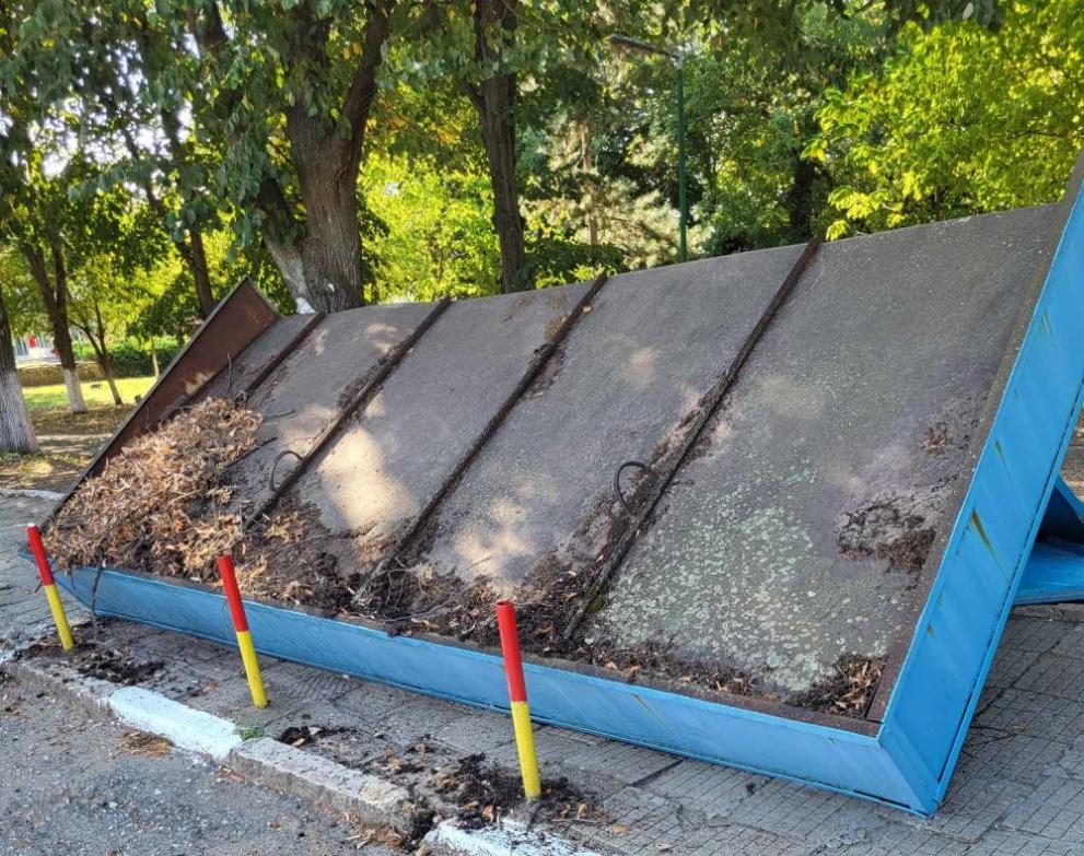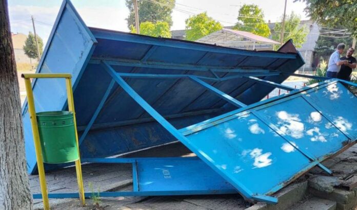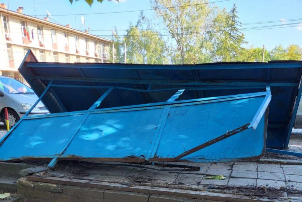 На косъм от трагедия в Дунавци. Спирка в центъра се сгромоляса, докато две деца стоят на пейката ѝ.