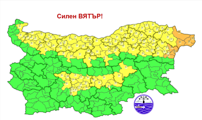 Жълт и оранжев код са в сила за по-голямата част от страната за 1 октомври. Предупреждението за потенциална опасност е за очакван силен вятър, съобщава НИМХ.