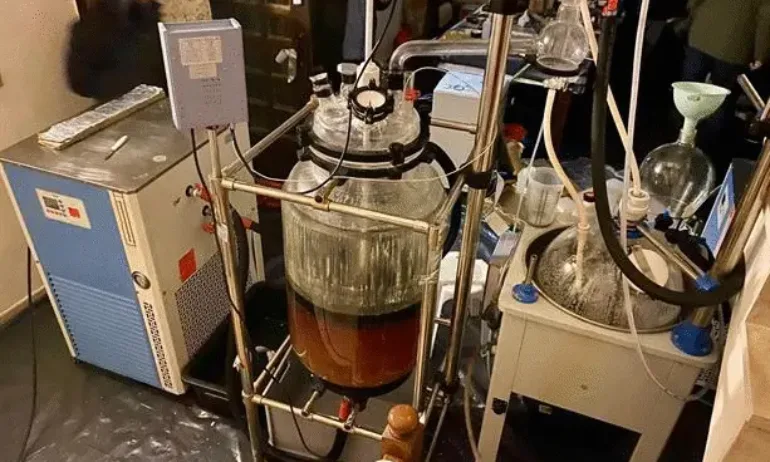 Иззети са производствен реактор с капацитет 100 литра, множество химикали, прекурсори и съдове, свързани с осъществяваната престъпна дейност. Открити са и вече произведени количества наркотични вещества.