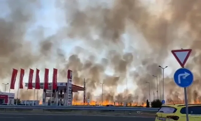 Голям пожар избухна на АМ „Тракия”, съобщиха от пожарната, цитирани от Нова тв. В района има и бензиностанция. На мястото вече са пристигнали огнеборци.