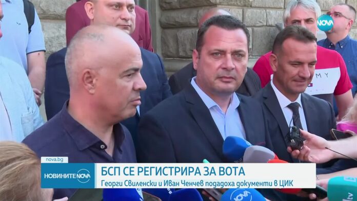 Георги Свиленски и Иван Ченчев подадоха документи за регистрация на БСП за участие в парламентарните избори на 27 октомври в Централната избирателна комисия.