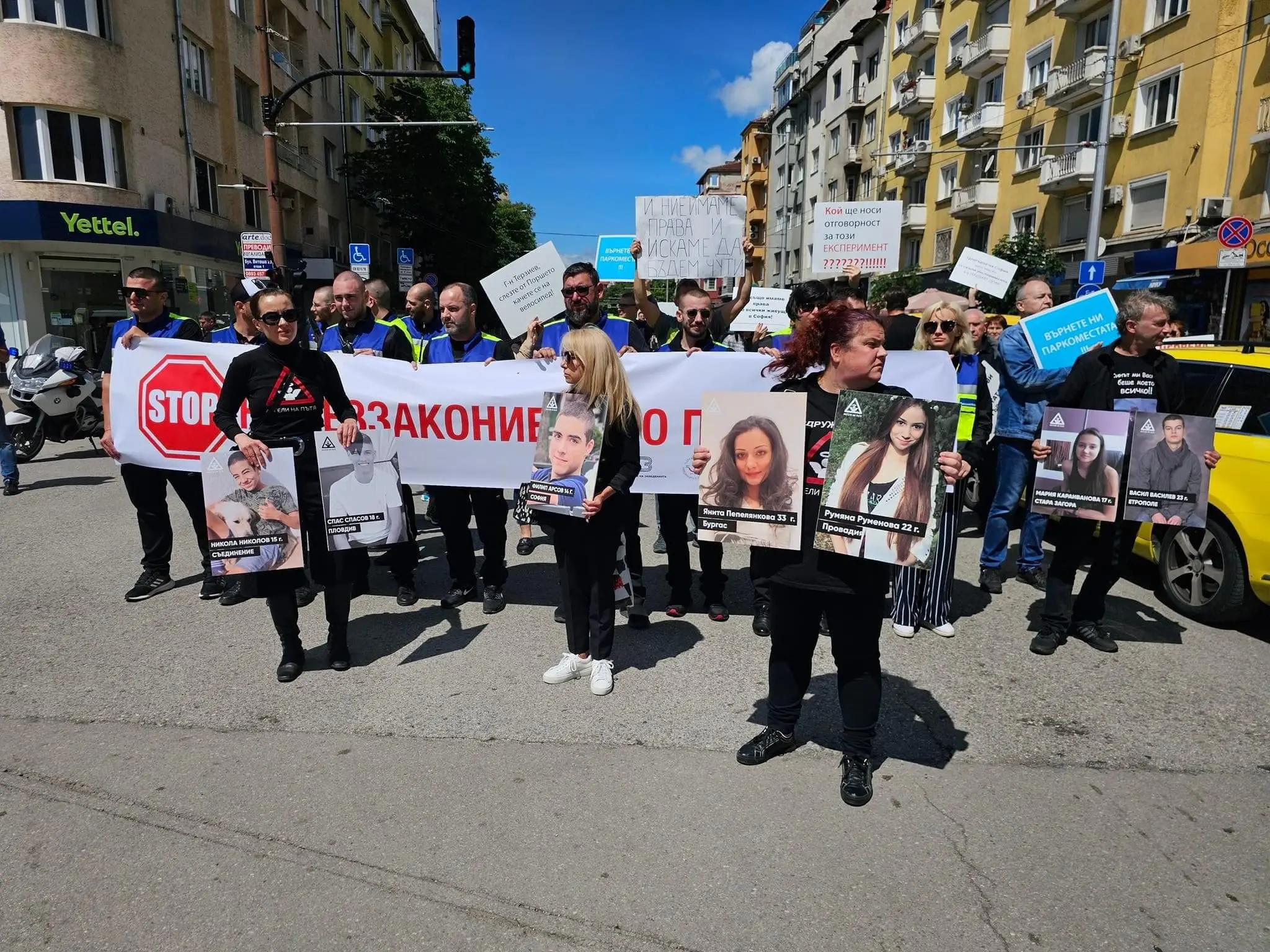 „Върнете ни паркоместата, гласи един“ и „Кой ще носи отговорност за този експеримент“ гласяха част от транспарантите