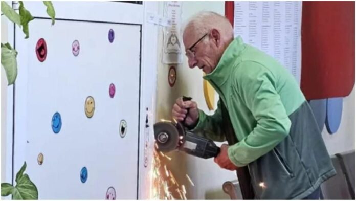 Врата на секционна избирателна комисия в Пловдив беше рязана с флекс машина в началото на изборния ден.