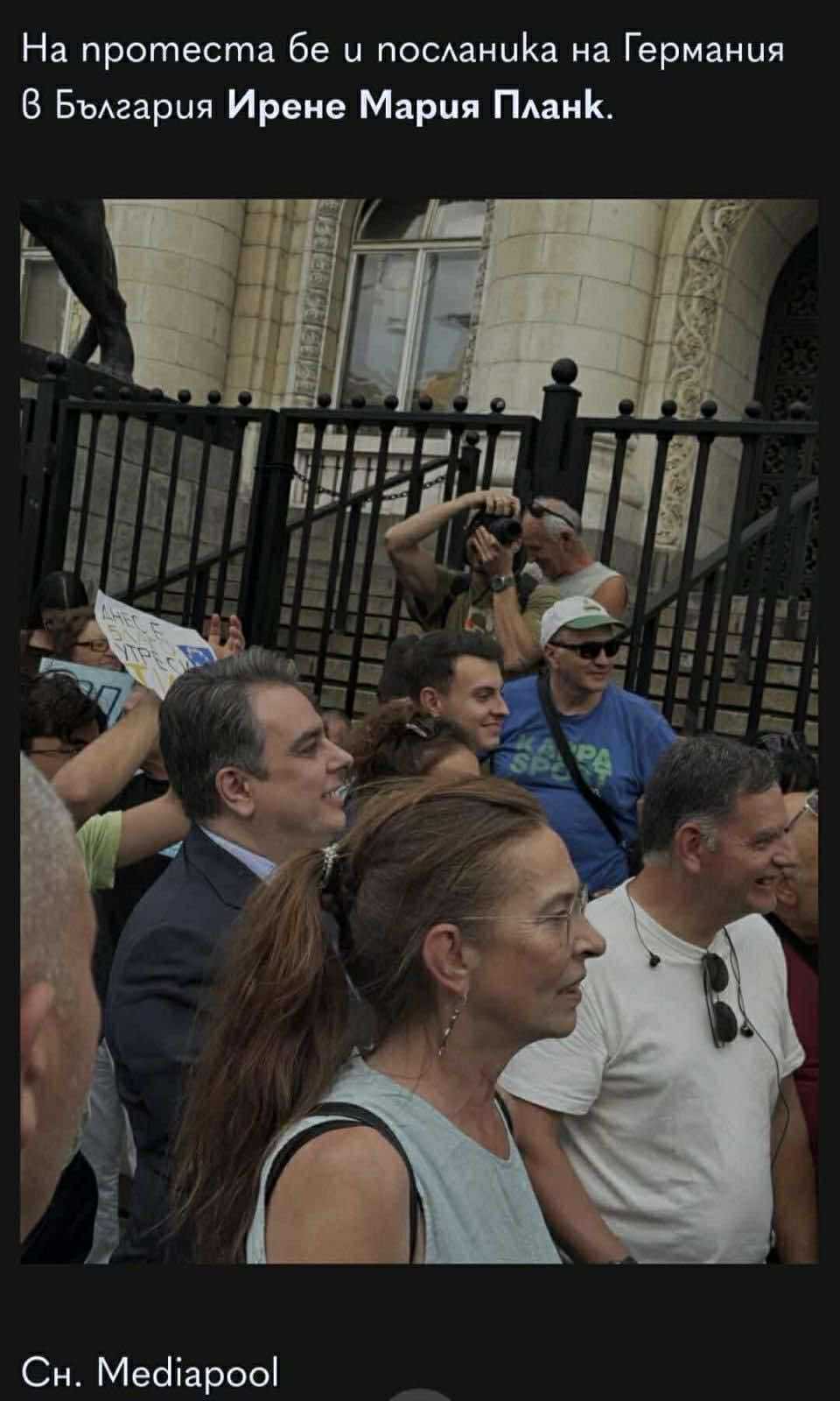 По скандален начин Германия се включи в политическите борби в България. Снощи посланичката Ирене Мария Планк се появи на митинга на ПП в защита на обвинения в корупция кмет на Варна Благомир Коцев.