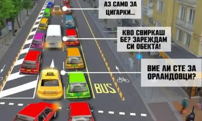 За да се паркира по този начин, е необходимо пространство. Когато трябва да се случи тук, много често паркиращият ще навлиза в насрещното платно, ще прекосява непрекъснатата линия и ще създава допълнителна трудност за движещите се в насрещното.