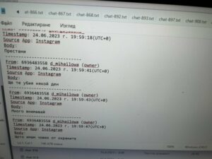 В жалбата си Георгиев прилага съобщения, изпратени му от Михайлова чрез инстаграм на 24 юни 2023 г., в които тя заявява: „Ще те убия някой ден“, „Много внимавай“ и „Щото имам човек от охраните“.