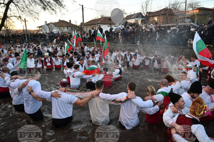 Стотици мъже се включиха и тази година в традиционното мъжко хоро в студените води на река Тунджа в Калофер. Богоявленският кръст бе хвърлен в реката от отец Димитрий след отслужената тържествена литургия в църквата „Св. Архангел Михаил“, съобщи БТА.