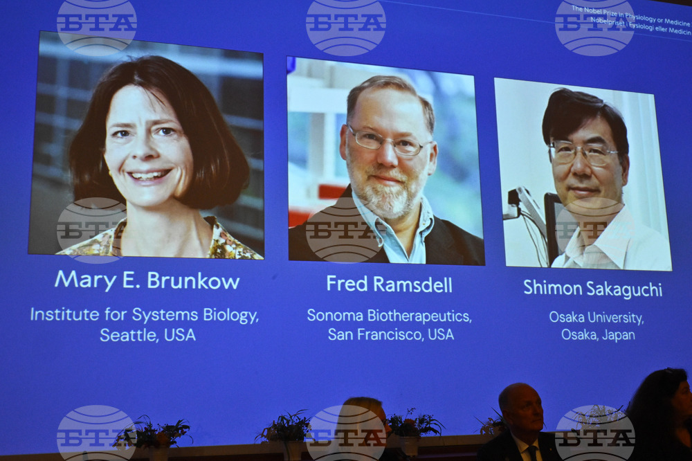 Американците Мери Бранкоу и Фред Рамсдел и японецът Шимон Сакагучи си поделят тазгодишната Нобелова награда за физиология или медицина, съобщи сайтът Nobelprize.org.