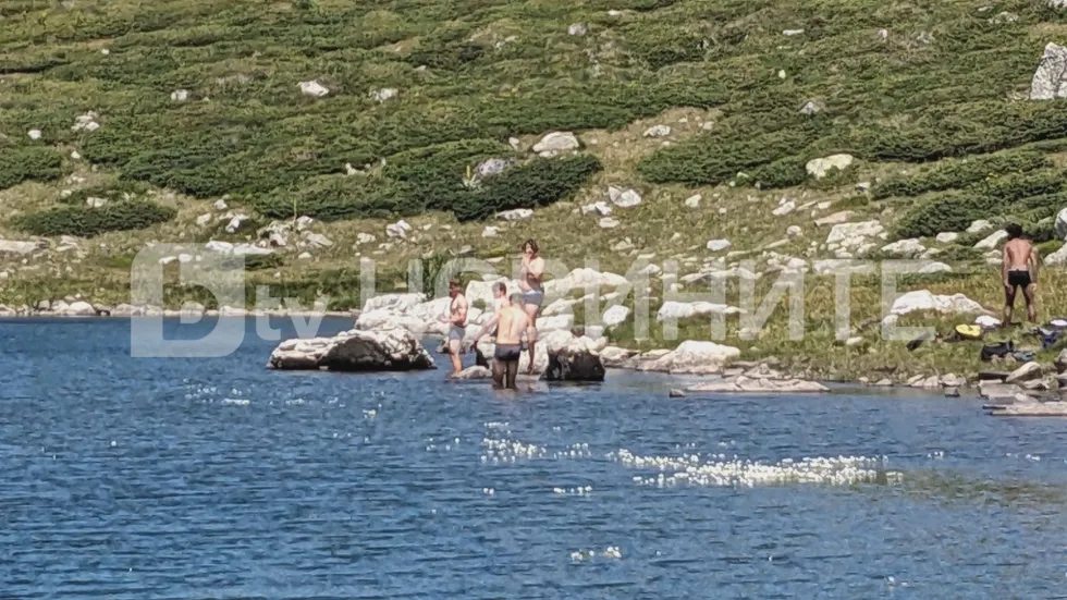 Снимки, изпратени до bTV, показват как петима души се разхлаждат във водата на езеро „Трилистника“. То е петото от групата на Седемте рилски езера. Къпането във всички е забранено.