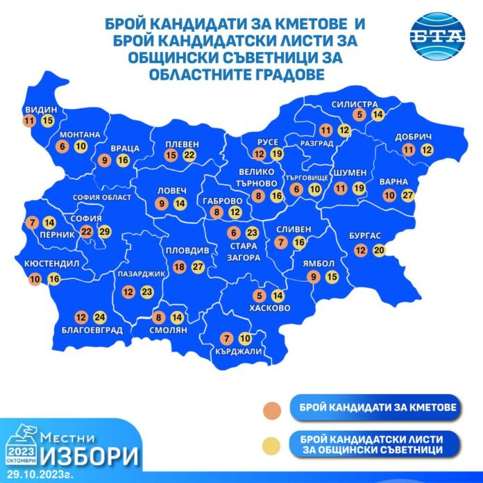 Общо 30 203 са кандидатите за общински съветници, като през 2019 г. те са били 29 433. За кметове на общини са регистрирани 1355 кандидати. За кметове на кметства са регистрирани 6915 кандидати. За кметове на райони са регистрирани 445 кандидати, като от тях мъже са 339 и 106 са жени, по данни на ЦИК към 16:00 часа на 27 октомври.