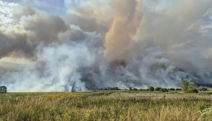 Пожарът в Харманлийско пламна в понеделник и вече е завзел над 20 000 декара гора, храсти, треви и земеделски земи.