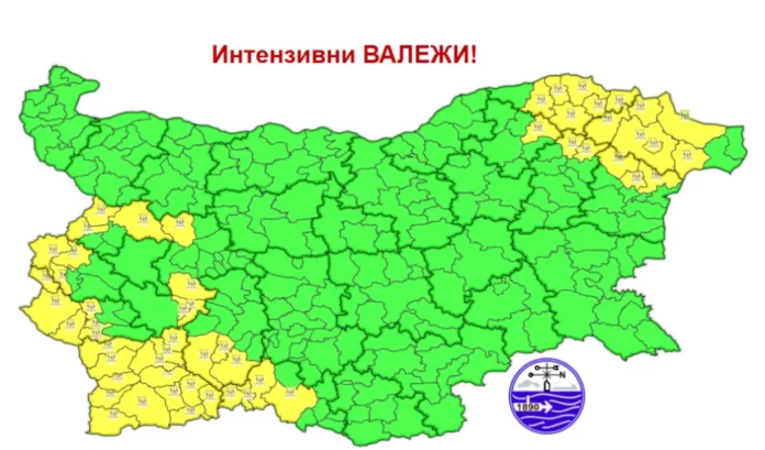Жълт код за обилни валежи е обявен за десет области у нас днес.
