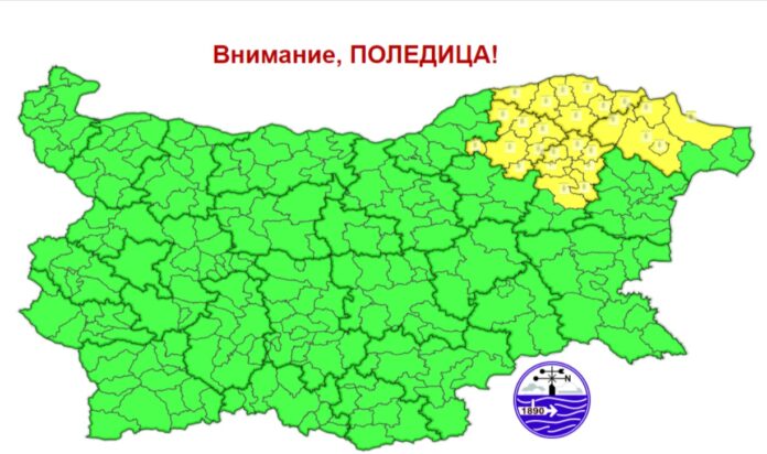 Предупреждението е в сила за областите Добрич, Разград, Силистра и Шумен. Там ще има условия за поледици. Очаква се в четирите области да се образува снежна покривка до 10 см и да има заледявания по пътните настилки.