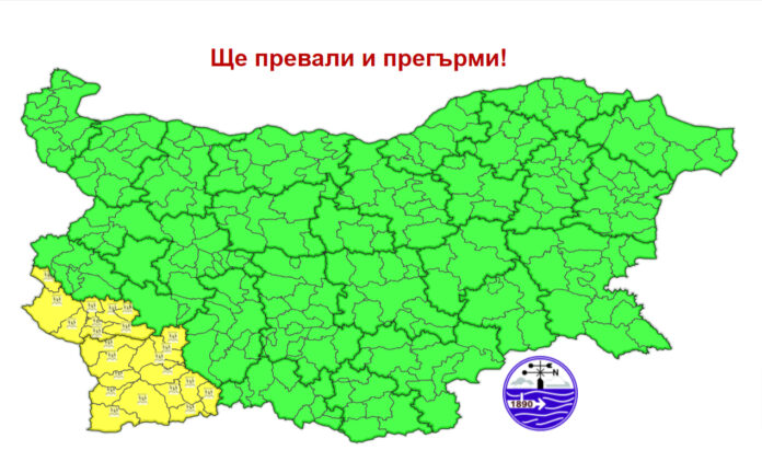 Жълт код за проливни валежи и гръмотевици е обявен за две области у нас в четвъртък – Кюстендил и Благоевград. Минималните температури за страната ще са между 8° и 13°, в София – около 10°, а максималните – предимно между 17° и 22°, в столицата – около 19°. Това съобщиха от НИМХ.