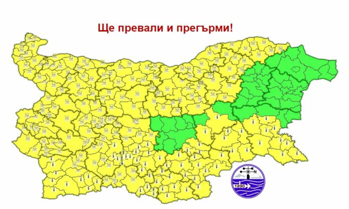 Жълт код за обилни валежи с гръмотевици и високи температури в неделя е обявен за 13 области на страната. Лошото време се очаква да засегне района на Видин, Враца, Монтана, Ловеч, Плевен, Велико Търново, Търговище, Силистра, Русе, Габрово, София-област, София-град, Кюстендил, съобщават от Националния институт по метеорология и хидрология.