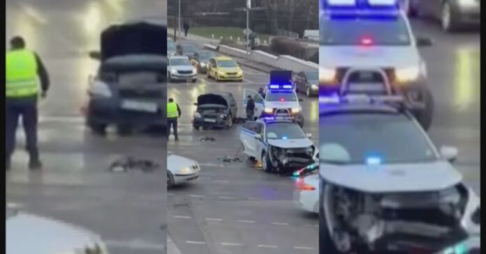 Тежка катастрофа в центъра на София. Автомобил се блъсна челно в полицейска патрулна кола на кръстовището под „Моста на влюбените“.