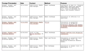 Три от контактите на лобиста Харис с журналиста Принс са свързани с пътуването на главния прокурор Иван Гешев до САЩ в края на януари тази година и участието му в традиционната молитвена закуска, която тази година се състоя на 2 февруари във Вашингтон.