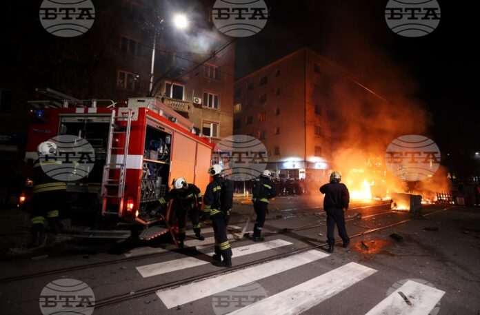 Над 10 души са задържани на протеста в центъра на София, казаха за БТА от СДВР. Един полицай е със счупен крак, друг служител на реда е откаран в болница.