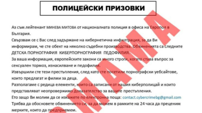 ГДБОП разпространи информация, според която по електронните пощи на българи се разпространяват измамни имейли за разследвания, свързани с детска порнография и педофилия.