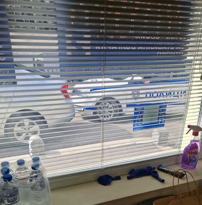 Полицейски автомобил е висял пред офиса на ГЕРБ.