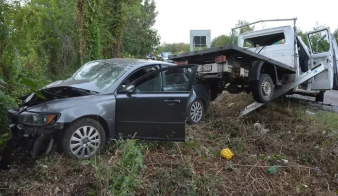 По първоначални данни бус с работници на пътностроителна фирма е опитал да направи ляв завой на прав участък на пътя, когато е ударен от лек автомобил, който е предприел изпреварване в същата посока на движение.